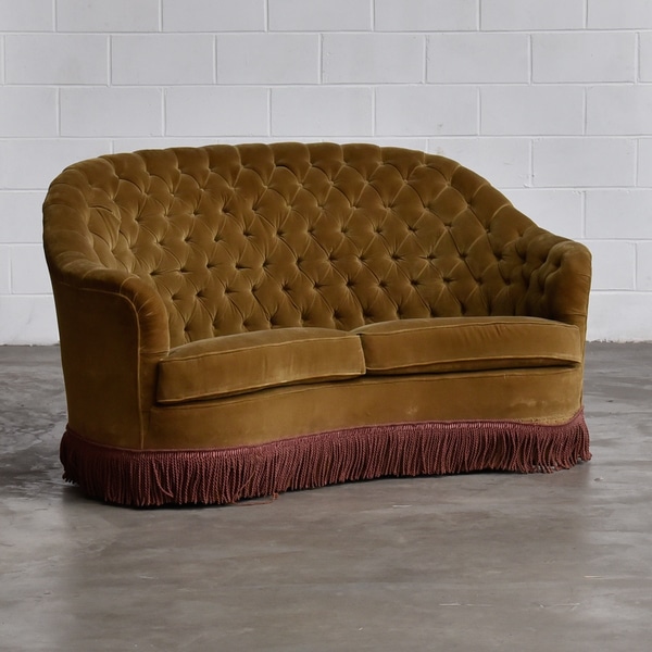 Sofá 2 Lugares Mostarda Curvo Capitone com Franja