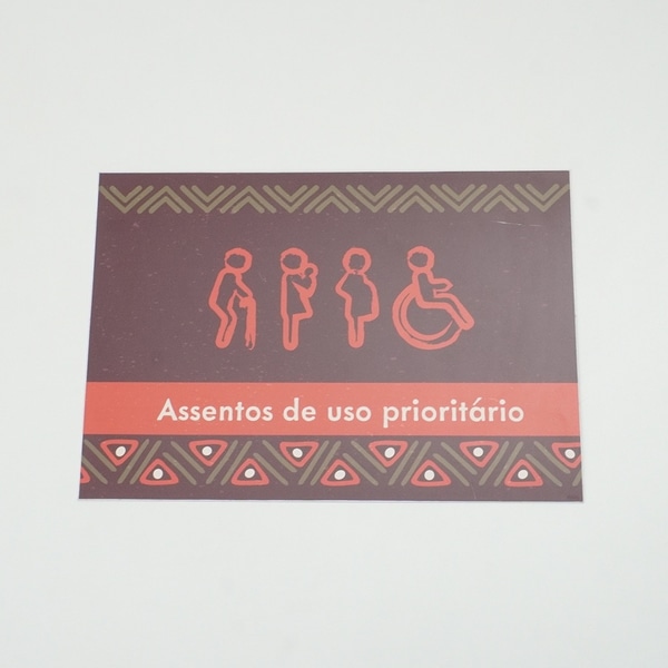 Placa retangular de sinalização em poliestireno marrom com desenhos e detalhes coloridos, apresenta marcas de tempo e de uso. VALOR DE LOCAÇ...
