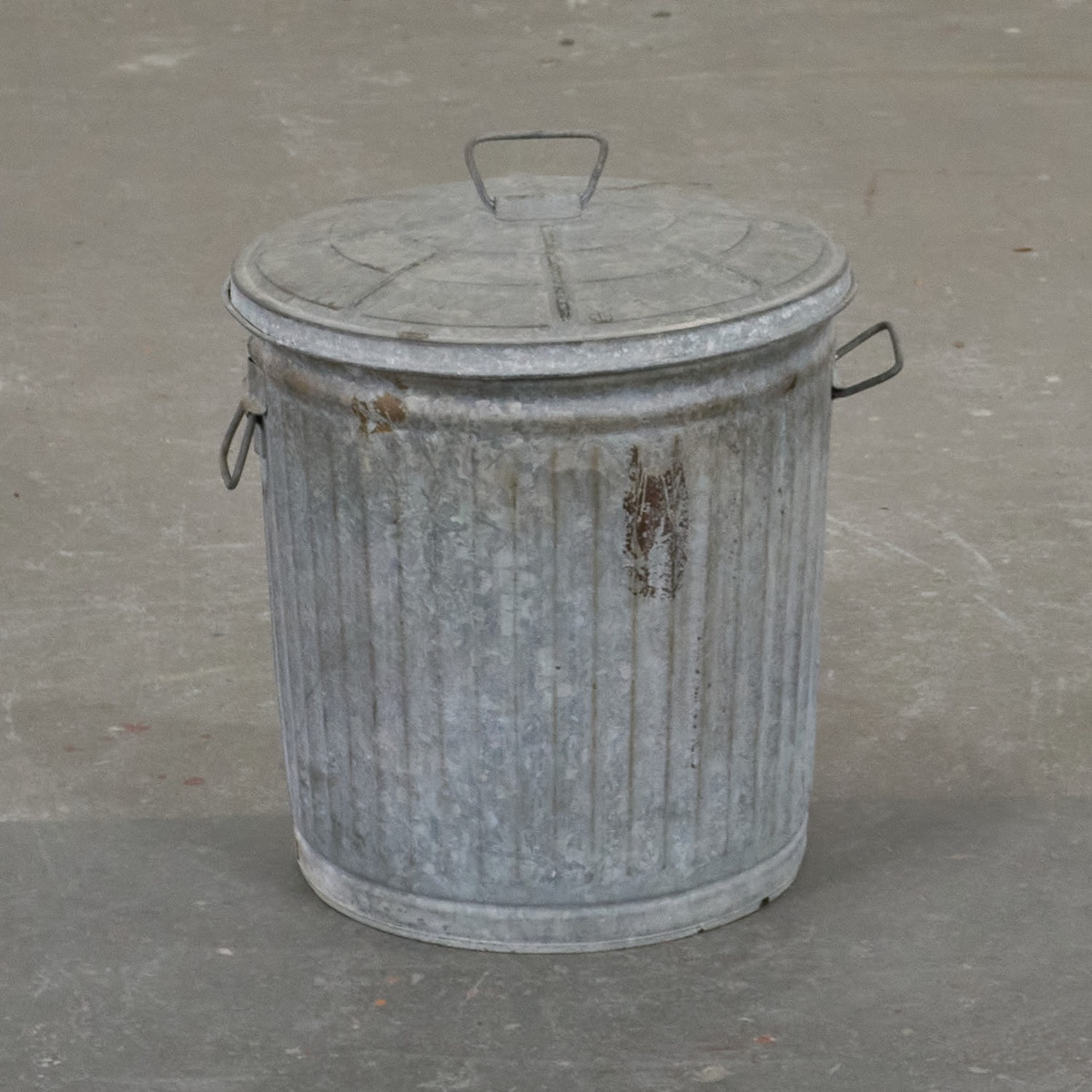 Latão de lixo, com tampa de alumínio, com amassados e desgaste