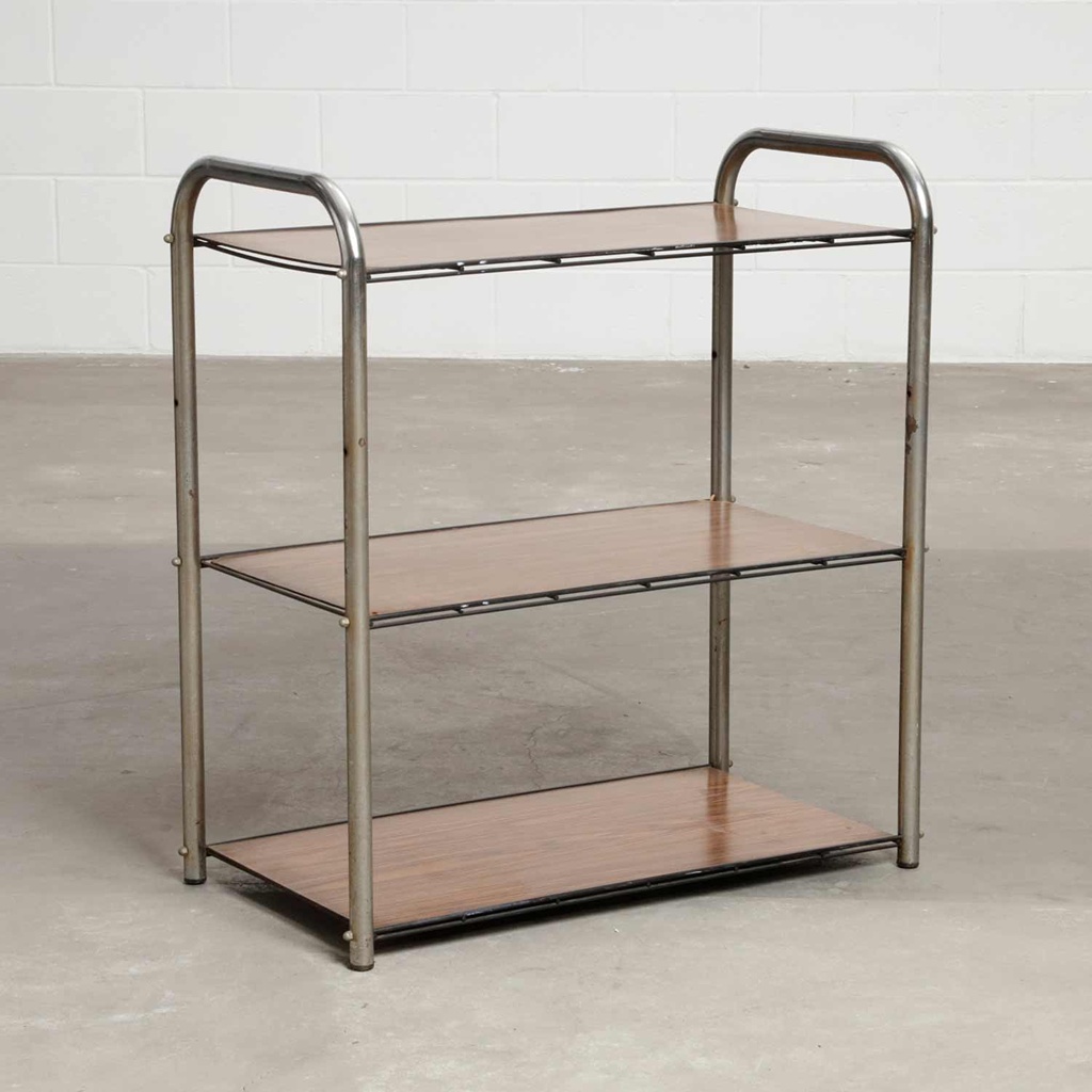 Mesa auxiliar 3 Prateleiras Cromado Madeira.