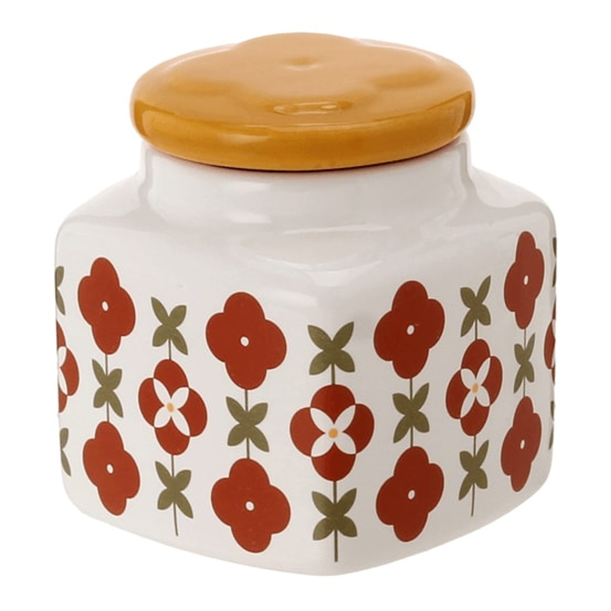 Pote pequeno porta tempero com estampa vintage vintage flores vermelhas. Faz parte de um conjunto.
