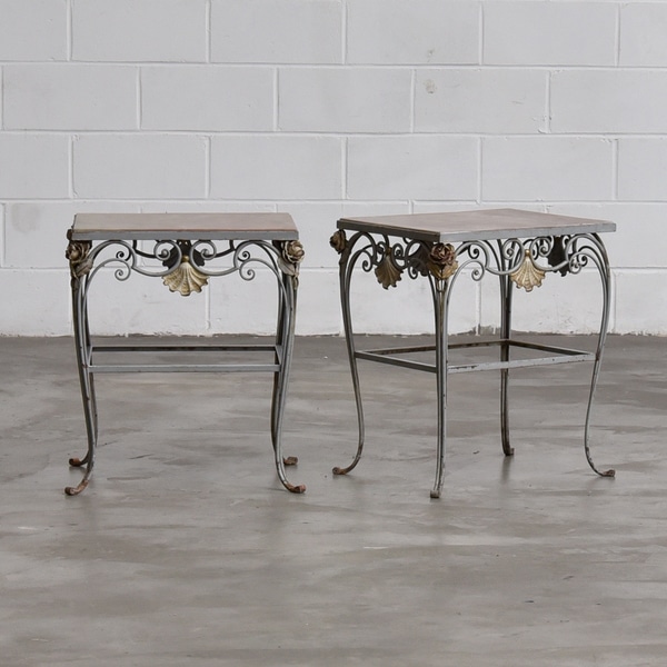 Mesa Auxiliar Retangular Ferro Cinza Mármore