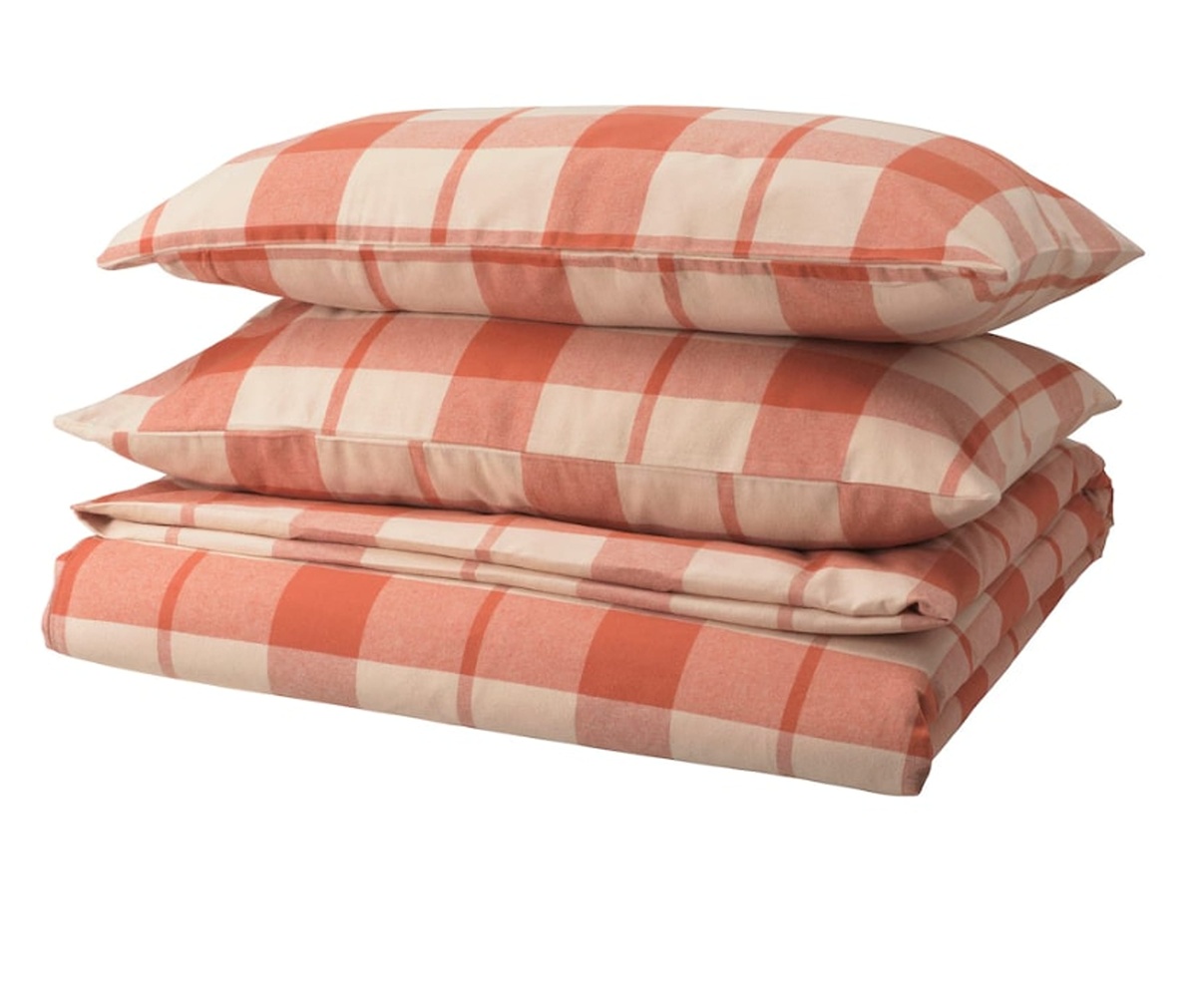 Porta travesseiro fronha xadrez coral e bege, em algodão. Tamanho Queen Size.
