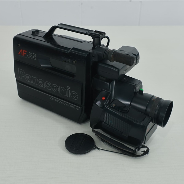 Filmadora na cor preta, possui pontos de desgate do tempo e uso