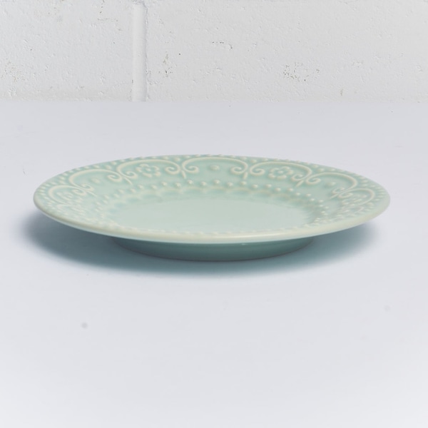 Em Cerâmica Verde Efeito Celadon, com Alto Relevo nas Bordas.