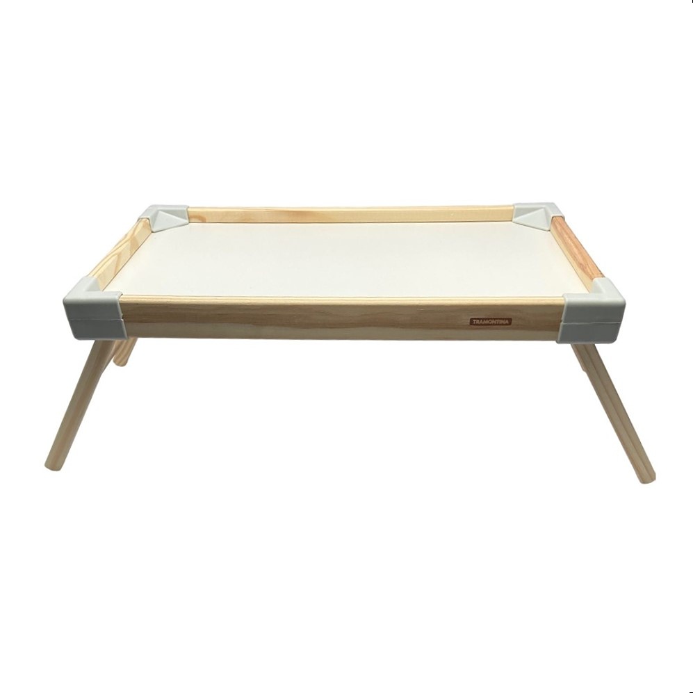 Bandeja café da manhã na cama, tamanho pequeno e de madeira.