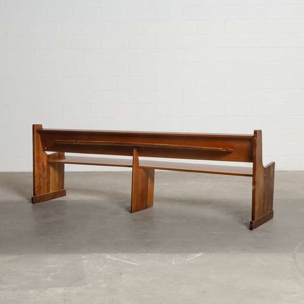 Banco igreja em madeira tom médio, com porta bíblia e sem genuflexório.