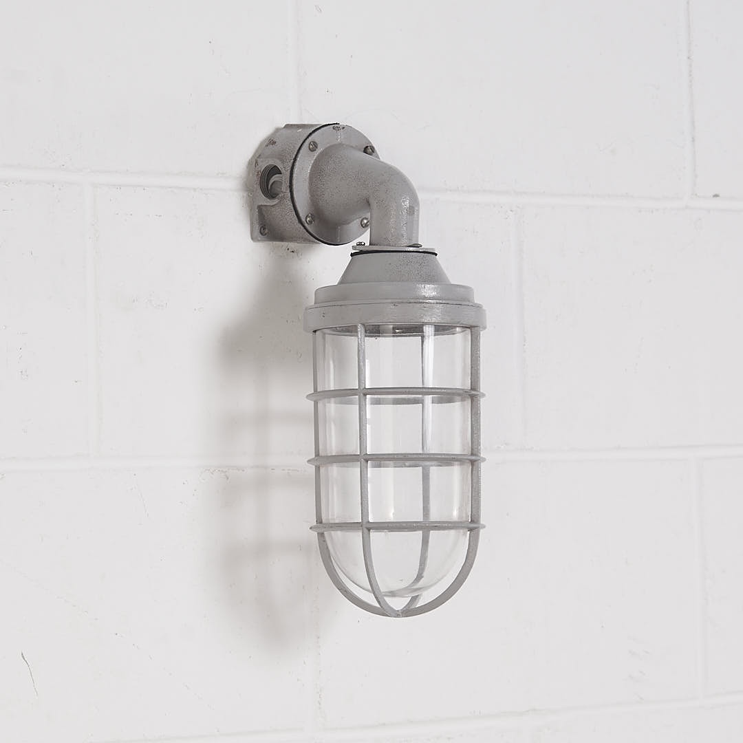 Arandela ferro aramado pintado de cinza claro com cúpula em vidro incolor